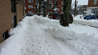 Hier la météo nous a annoncé une accumulation de neige d'environ 5 cm, la neige est en fait tombée toute la matinée et les 5 cm avait une allure bien plus impressionnante et ressemblaient plutôt à 30 à 40 cm!